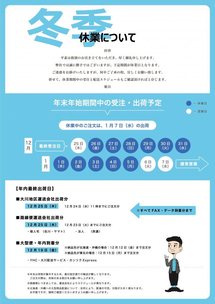 冬季休業に伴う受注・配送のスケジュールのご案内はこちらになります。