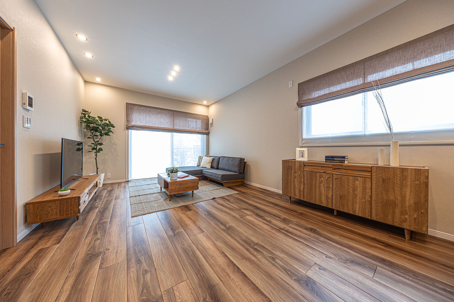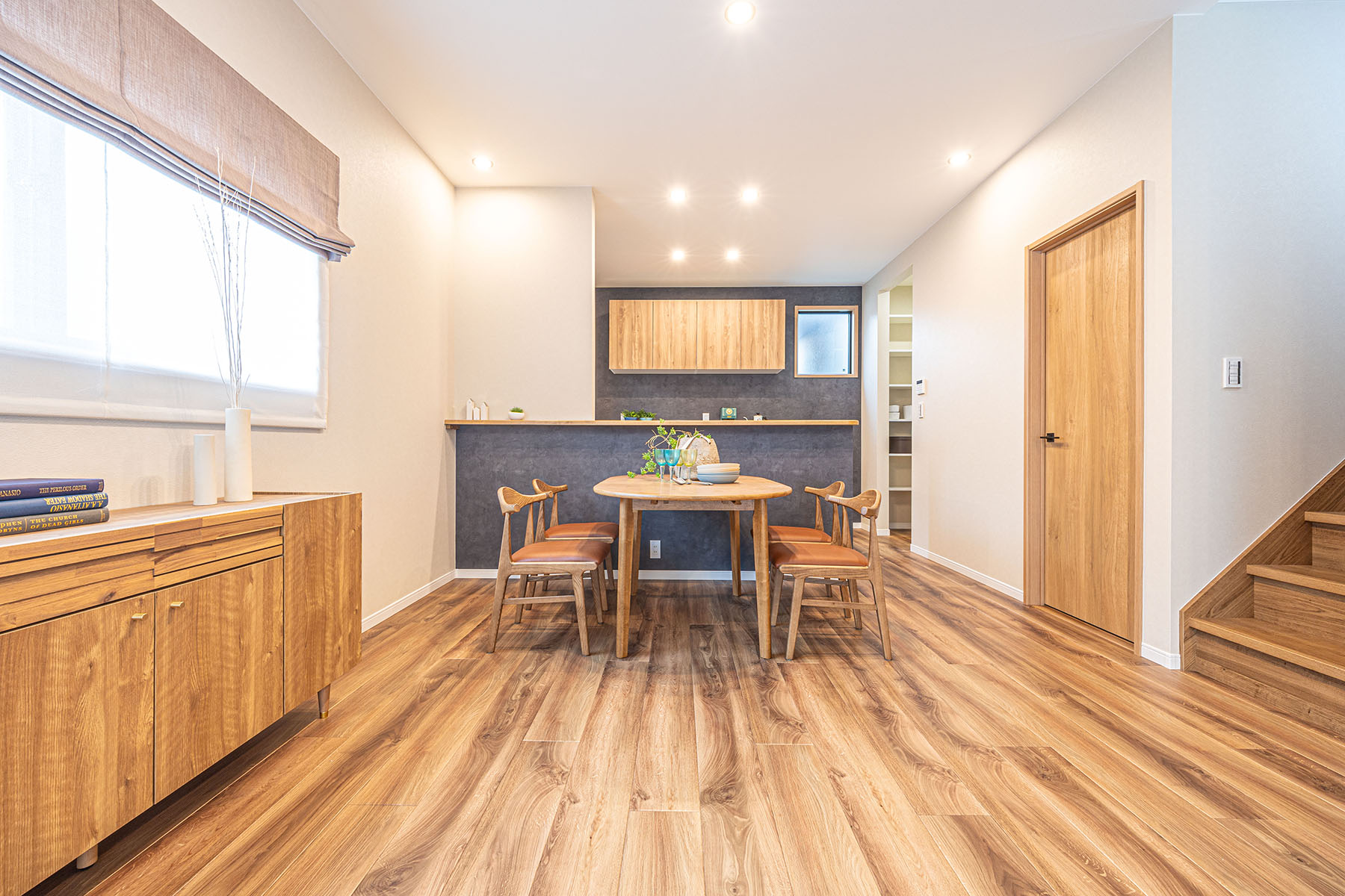 木目をベースにした空間づくりで、床の木目とも自然に調和しながら、