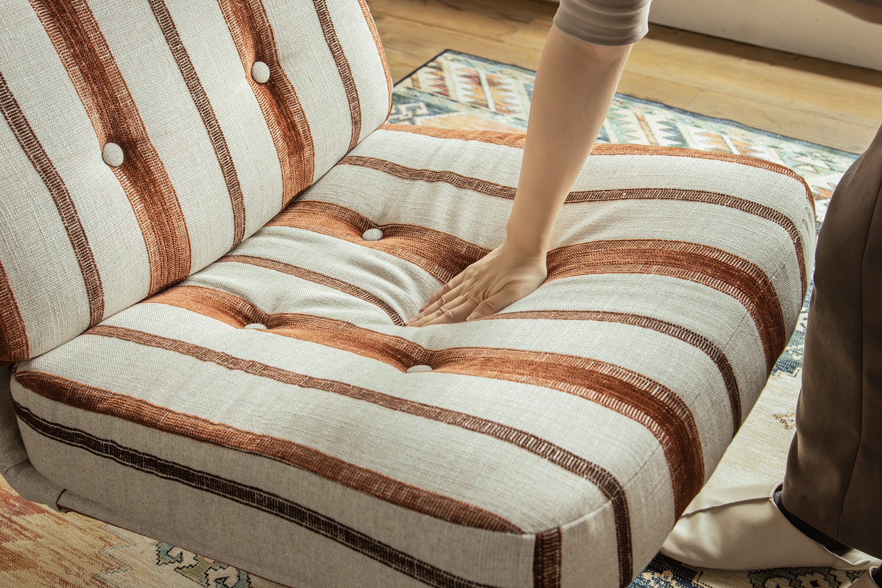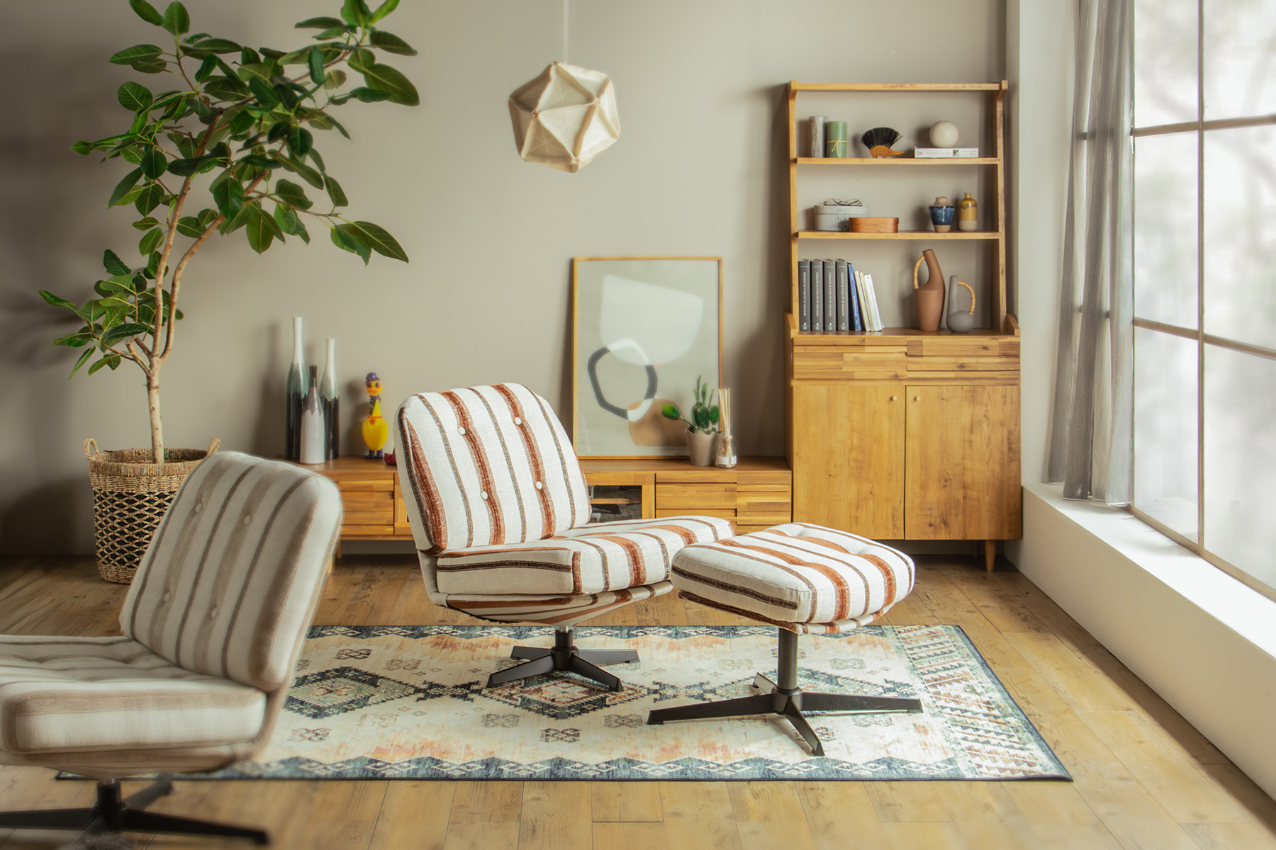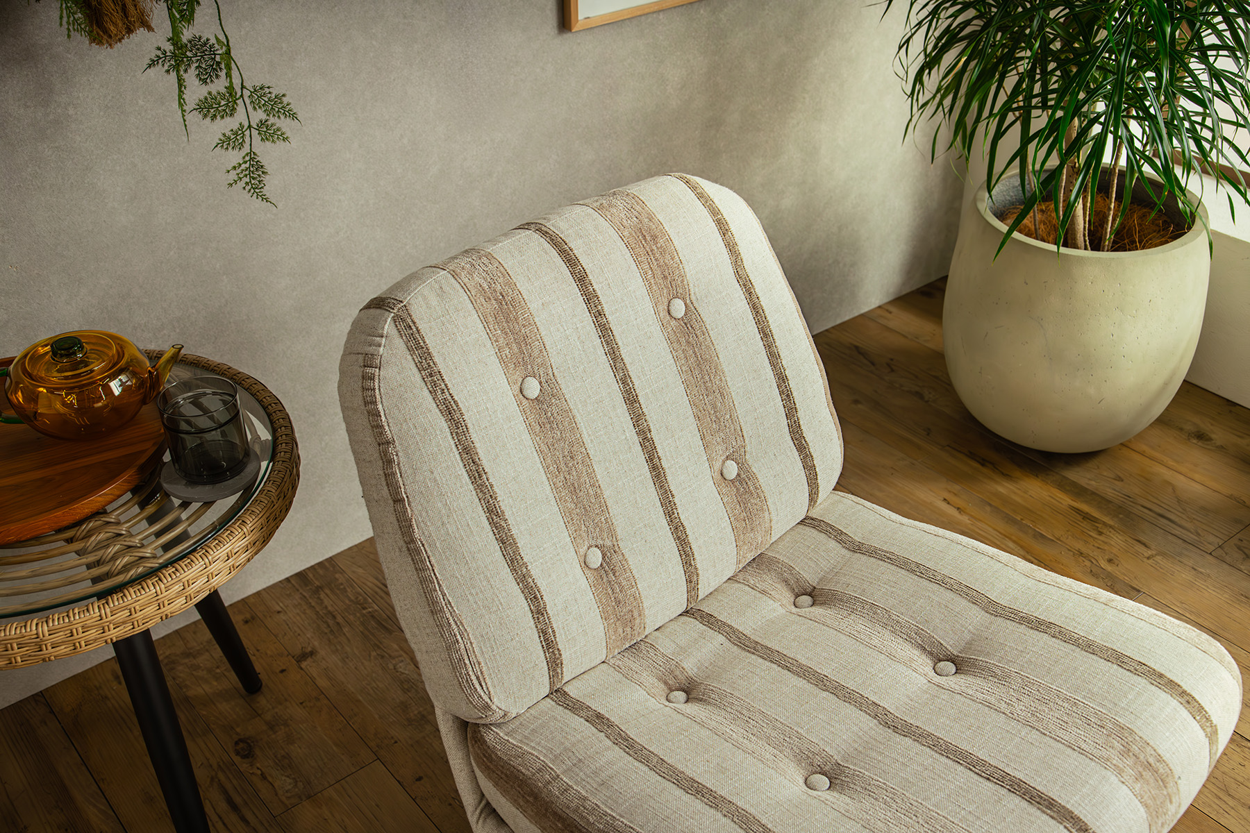 ストライプの生地はアクセント要素がありつつも、お部屋に溶け込みやすい仕上がりに。