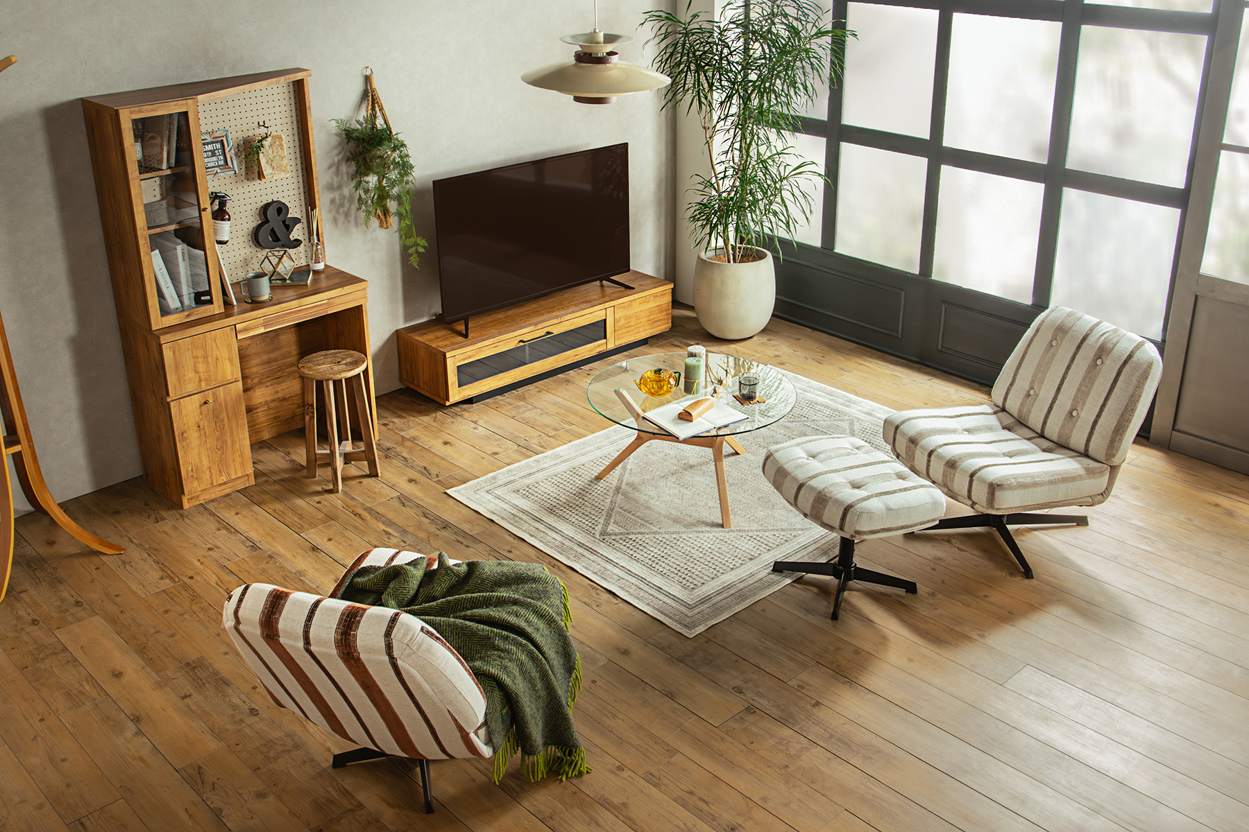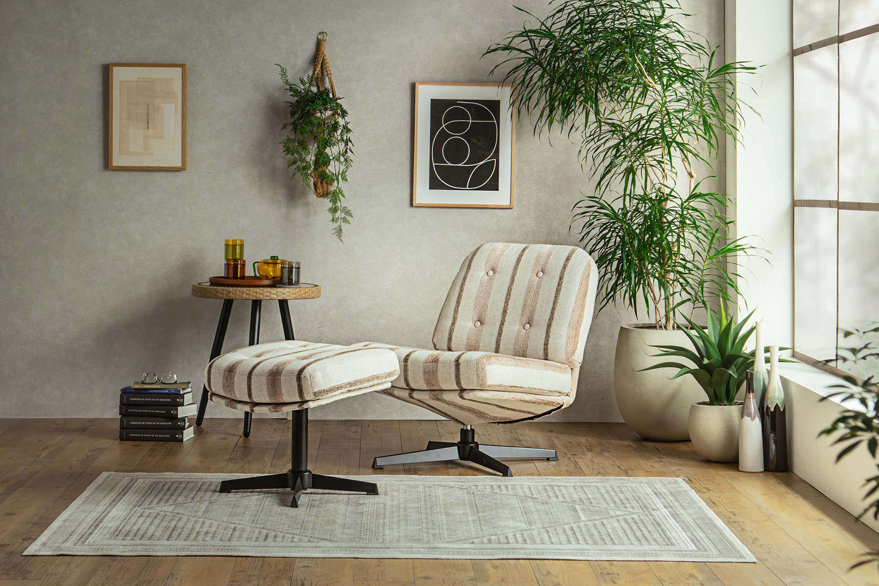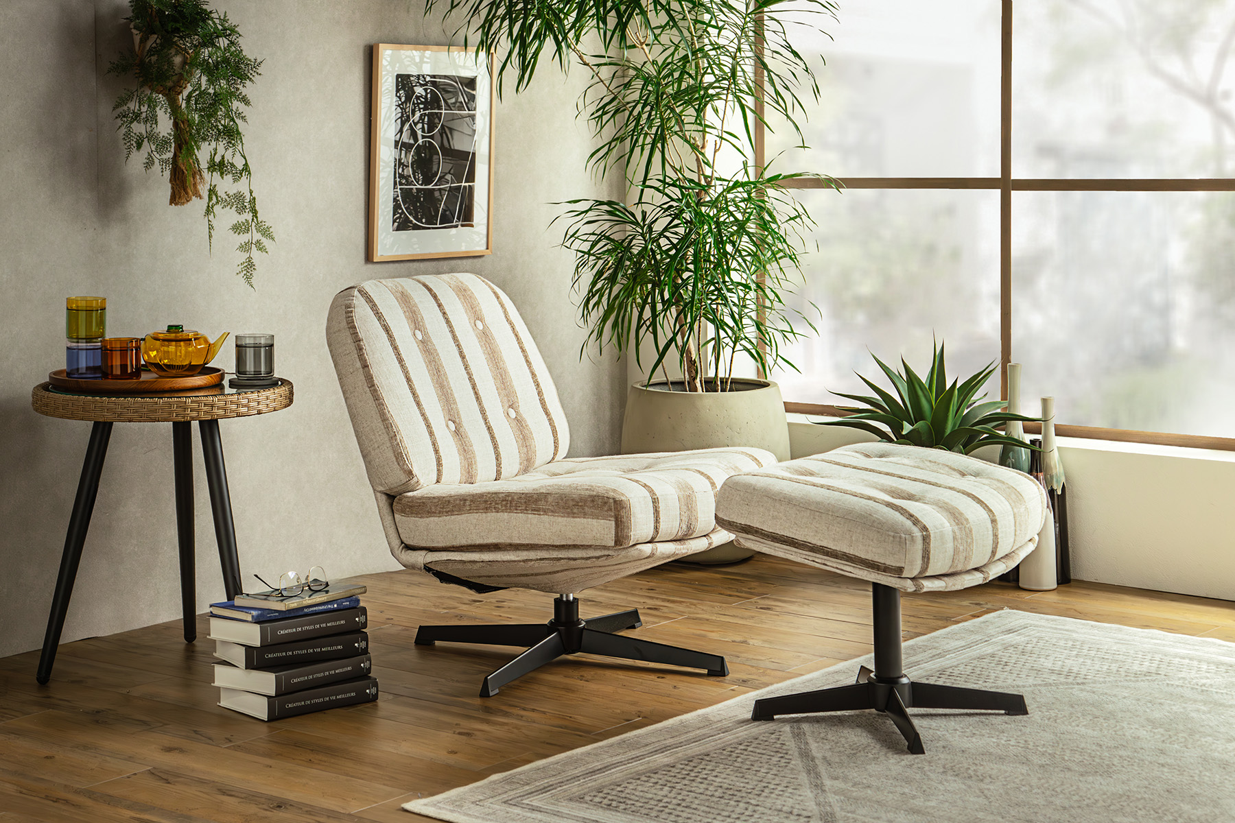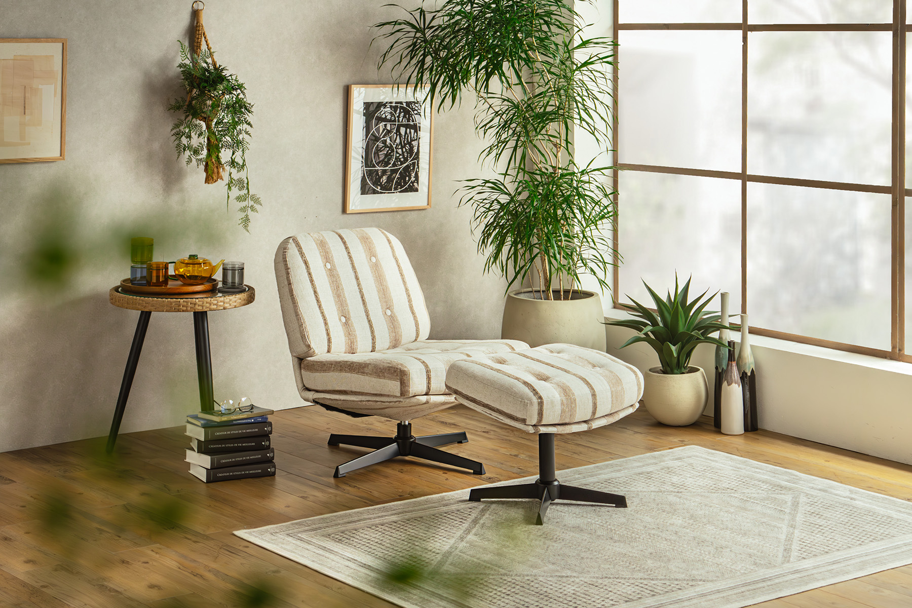 ストライプの生地はアクセント要素がありつつも、お部屋に溶け込みやすい仕上がりに。
