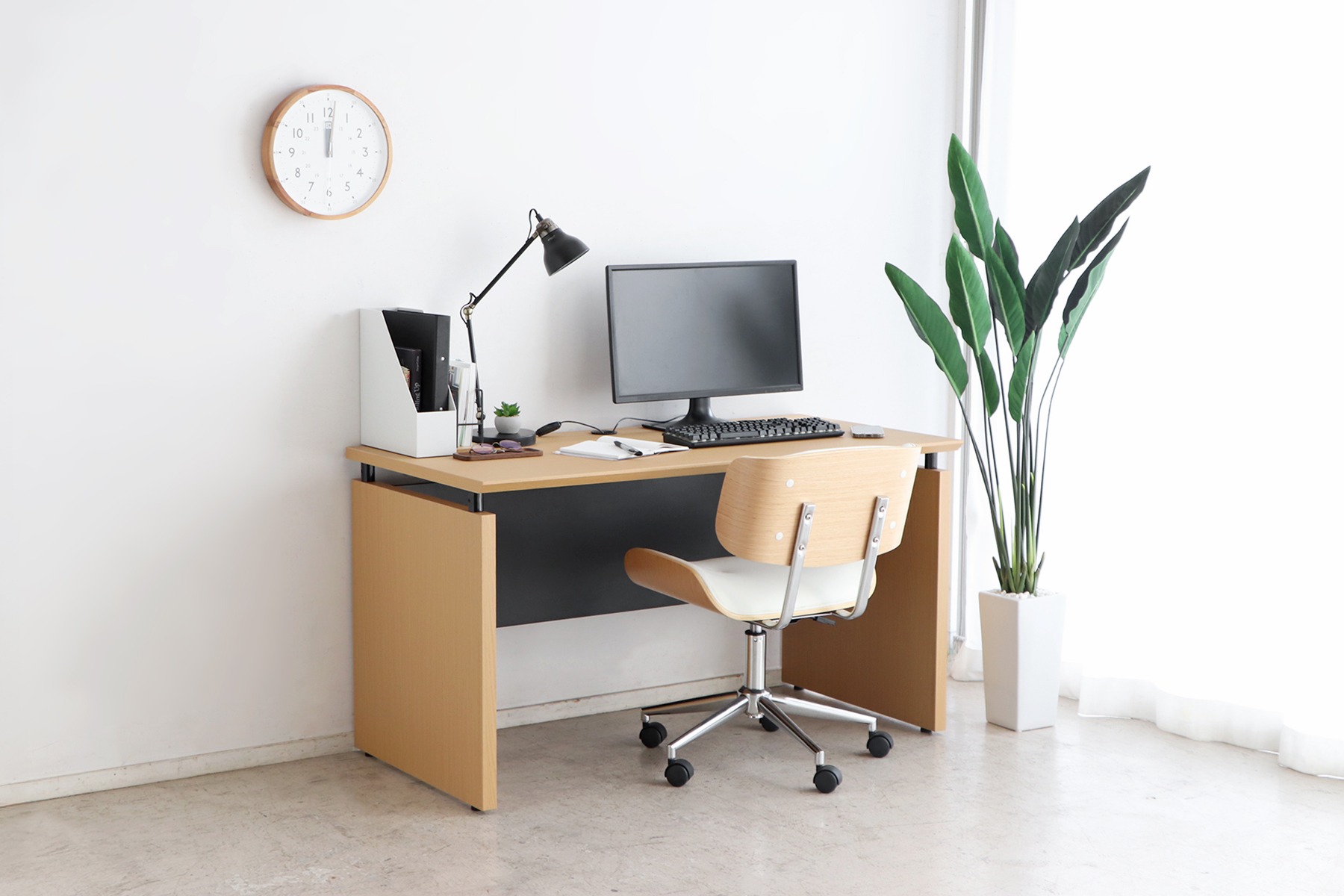 すっきりとしたシルエットで、空間を選ばず使いやすいデスクです。