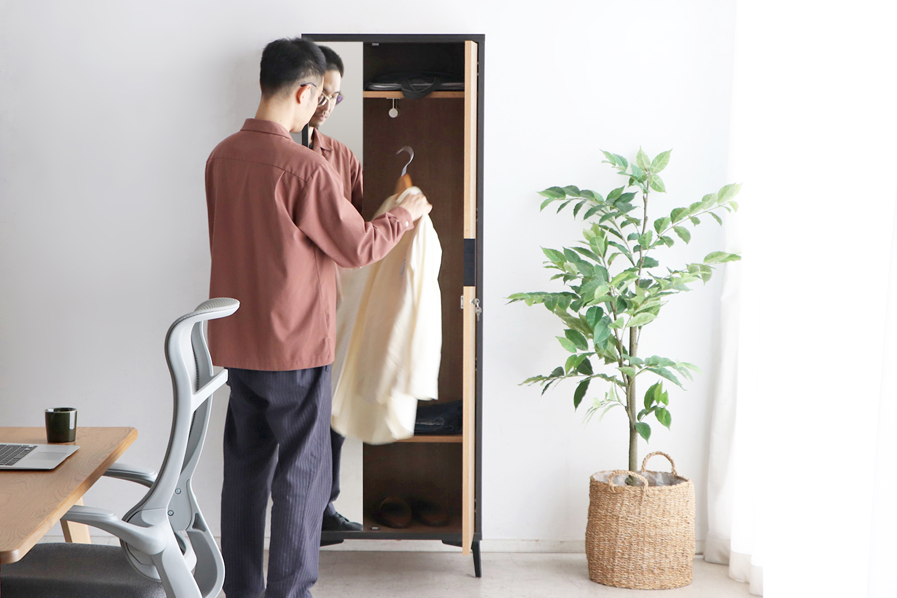スーツ・コートもそのまま掛けられるハンガー付きタイプのロッカーが登場!