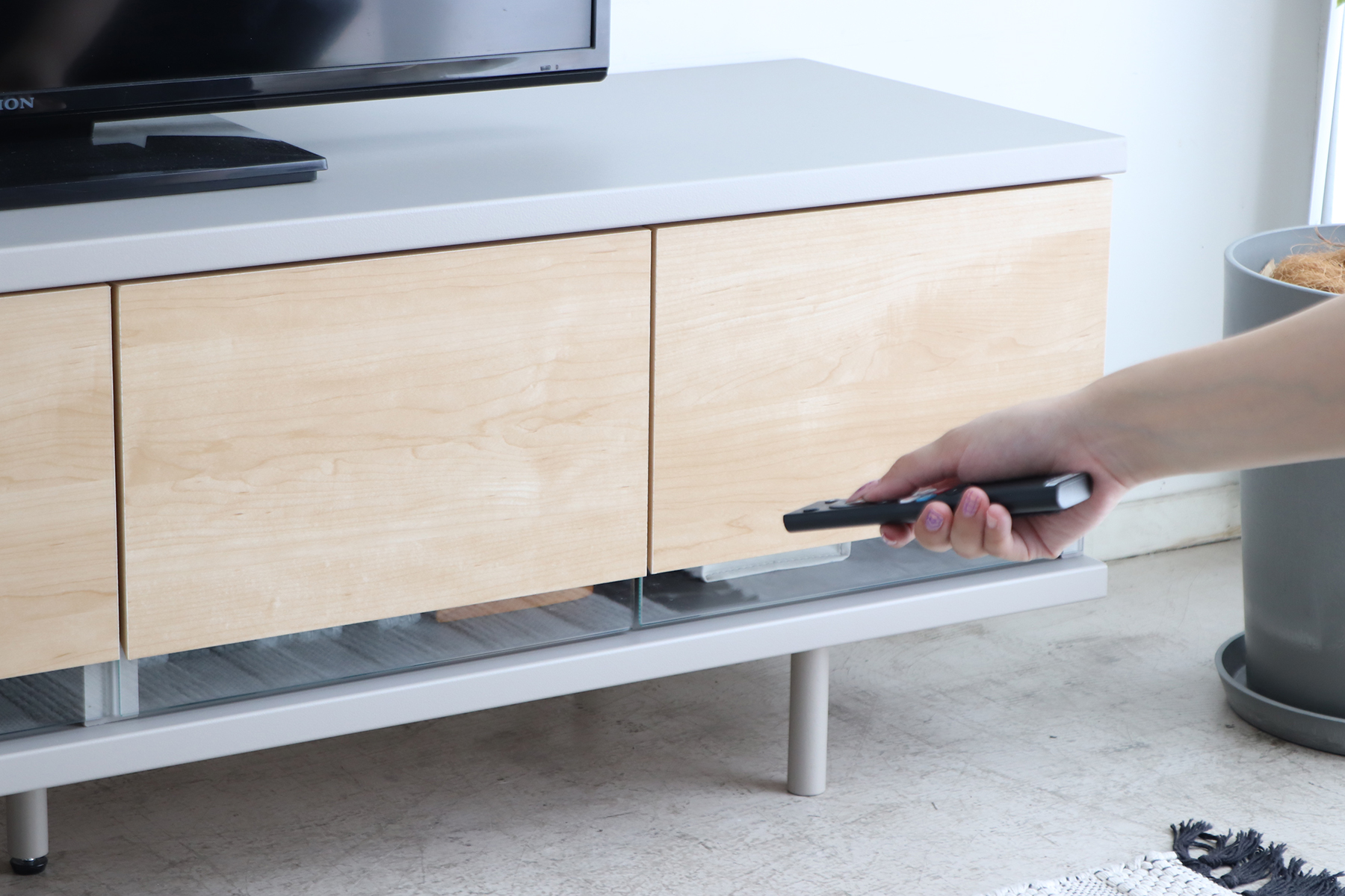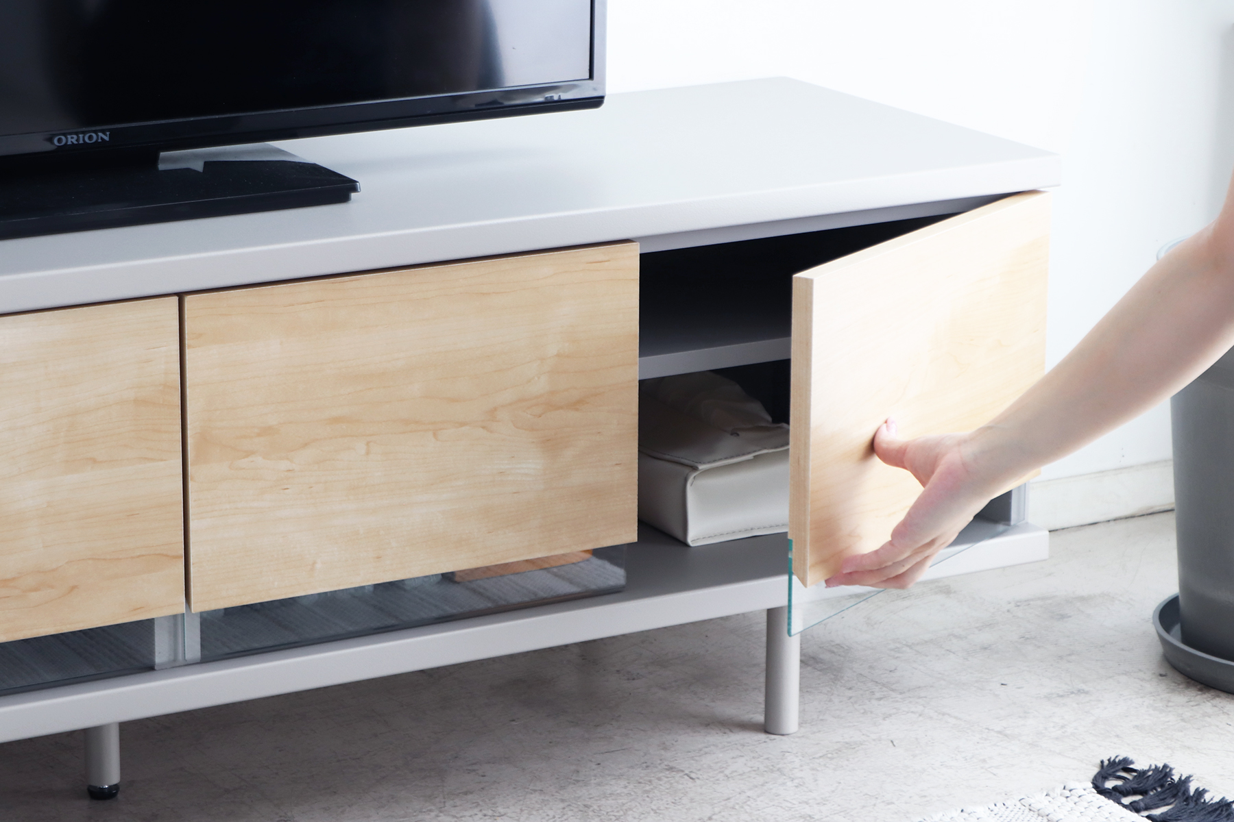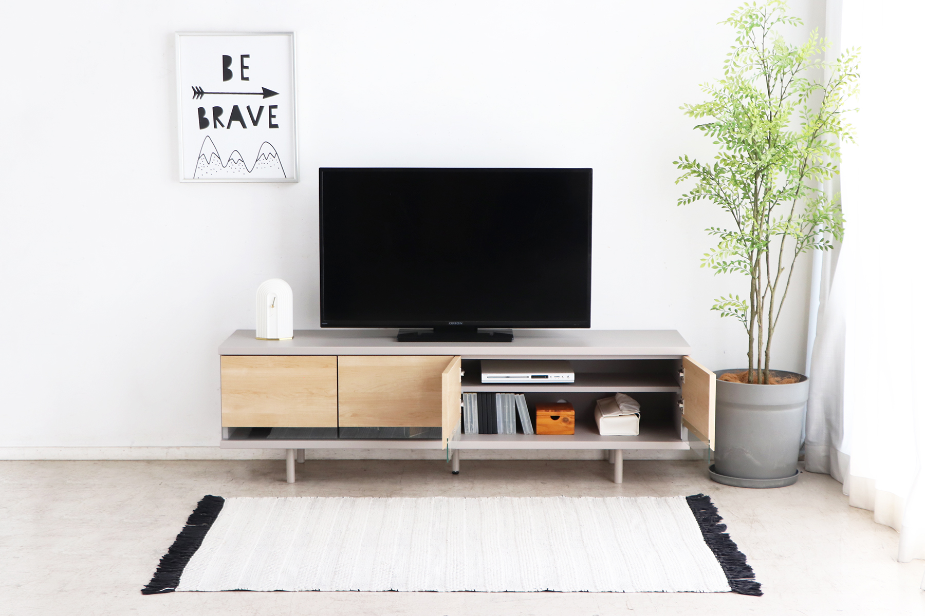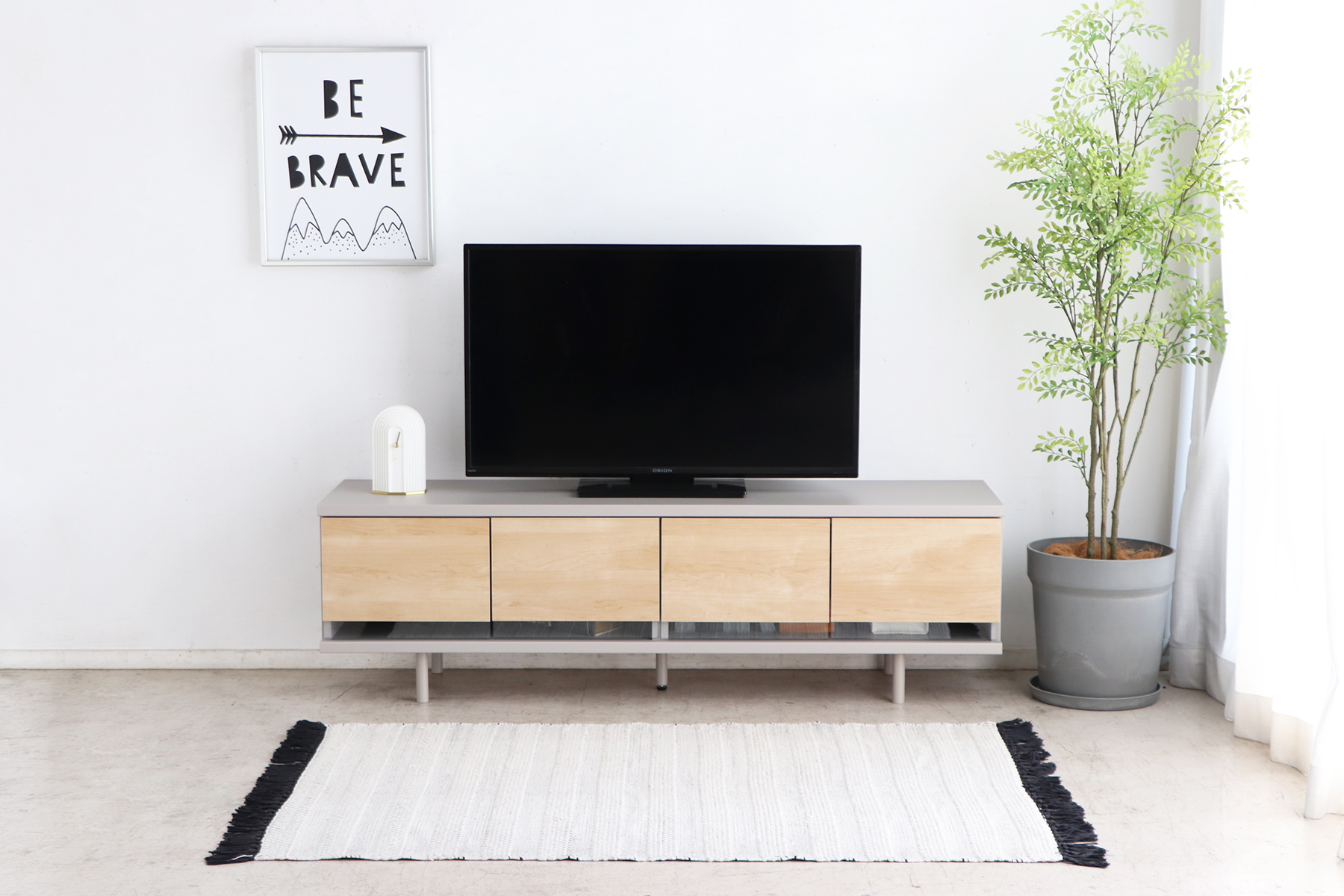 トレンドのグレー色にメイプル柄の木目がおしゃれで、どんなお部屋にも馴染むテレビボード。