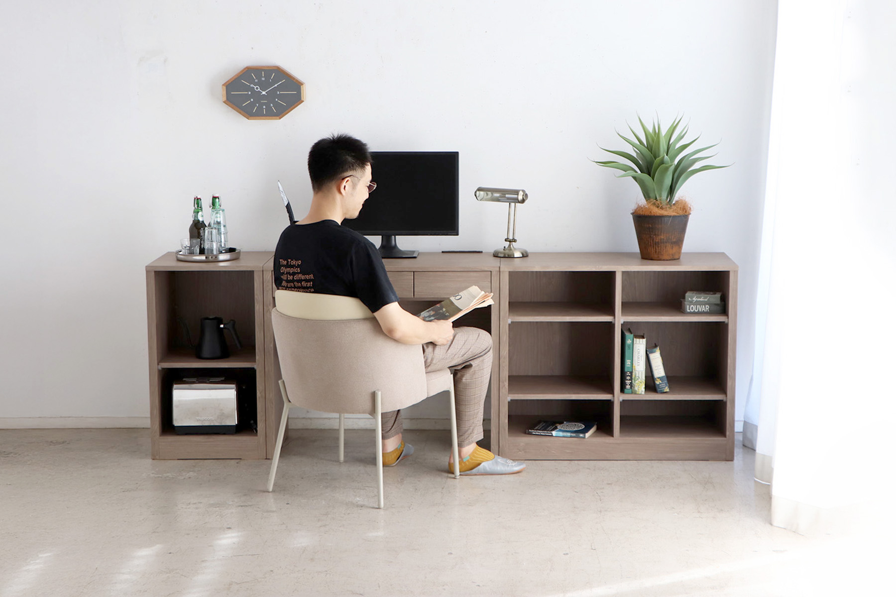 充電、収納、デスクワーク、全てが美しく整う。変幻自在のモジュール設計。