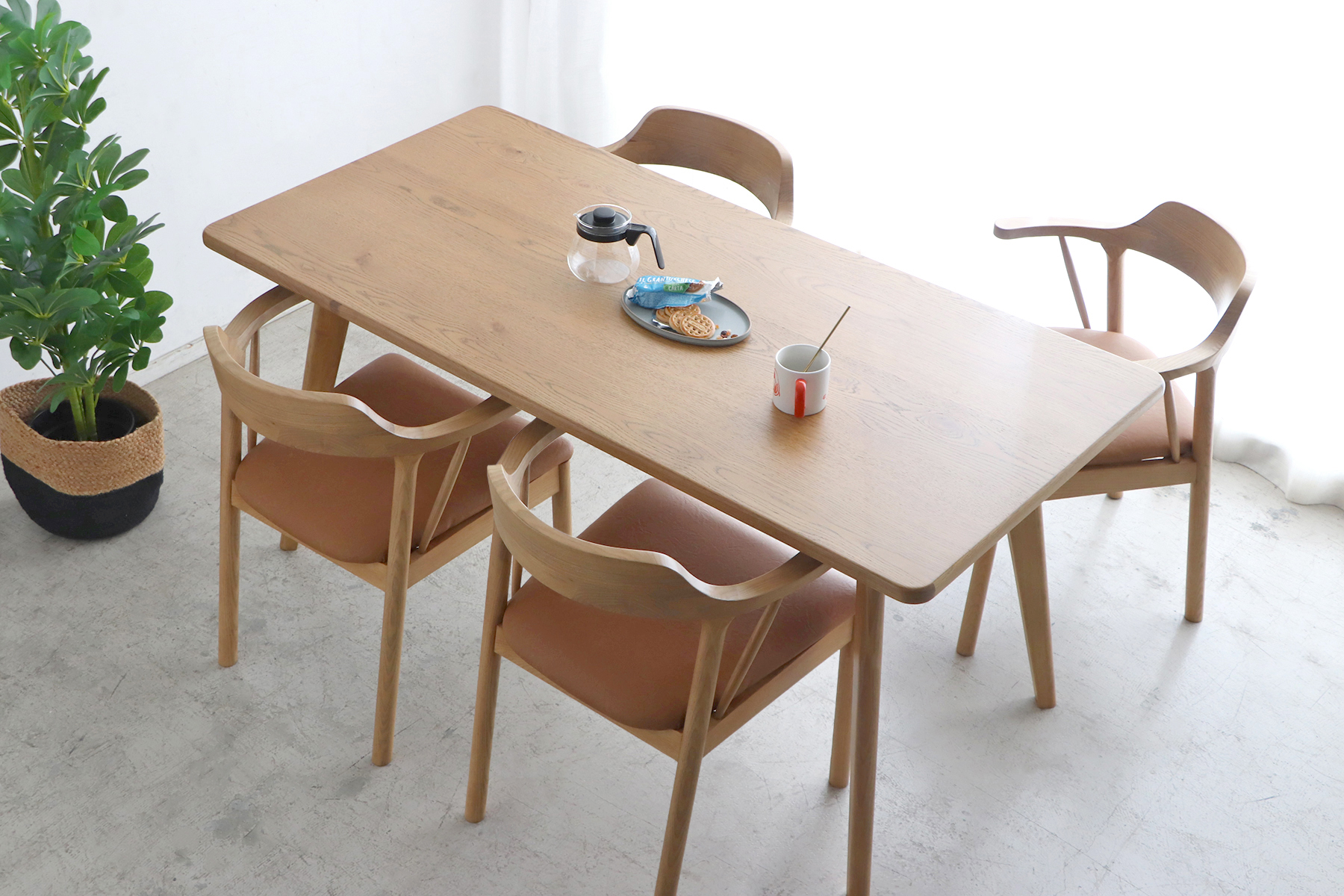 ナチュラルな木目があたたかみを添える、欧風デザインのダイニングテーブル。