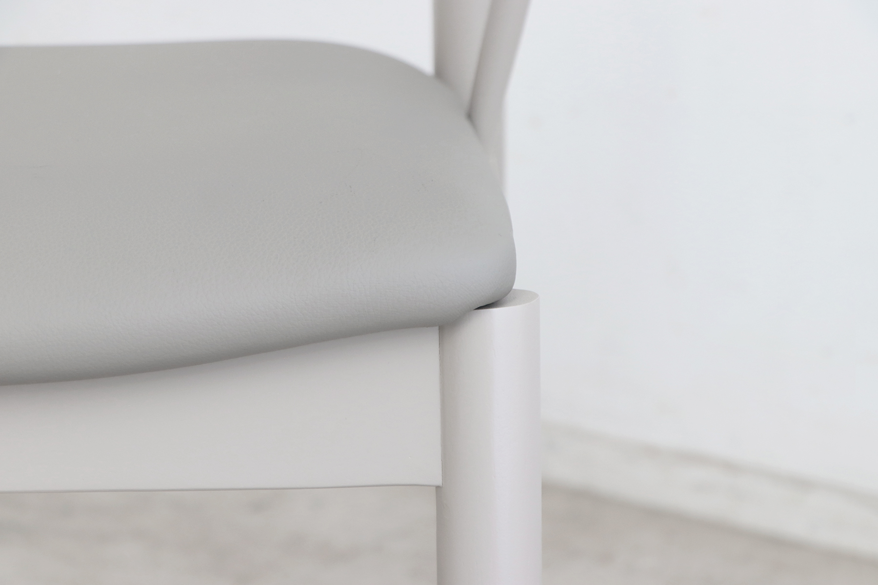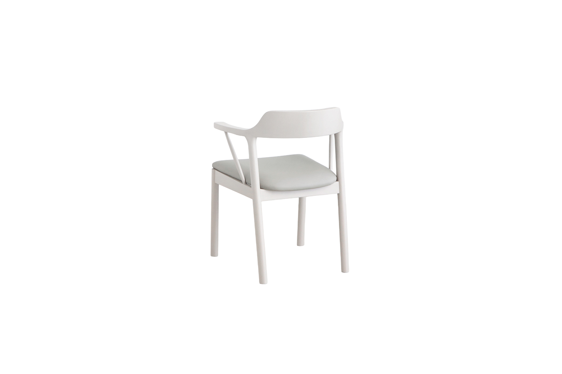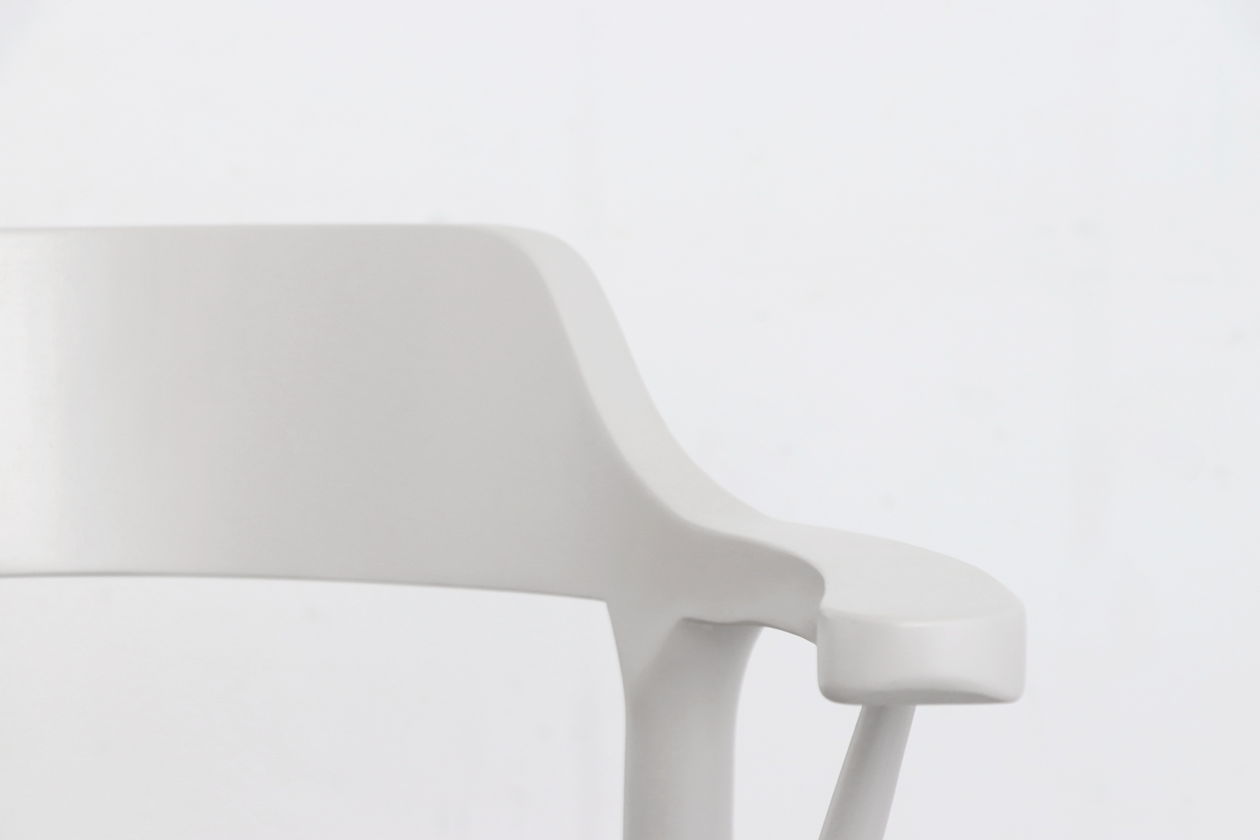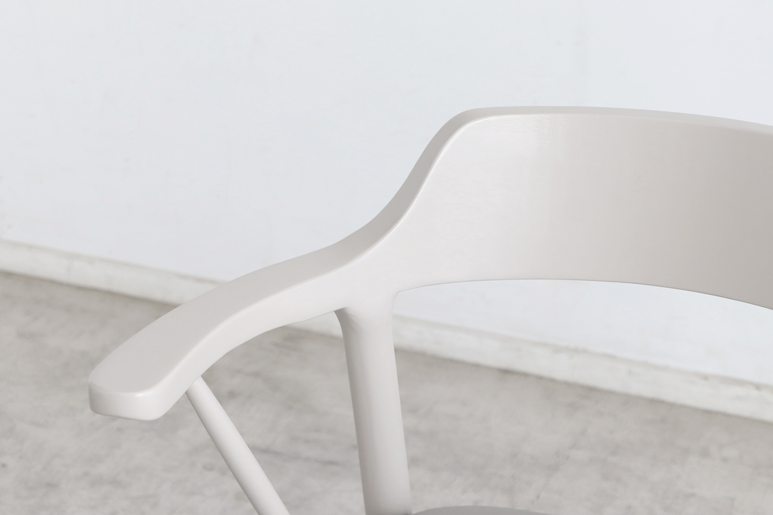 背中や腰に沿ってカーブしたラインと、肘を自然に預けられる絶妙な高さが、座る人の身体をそっと包み込みます。