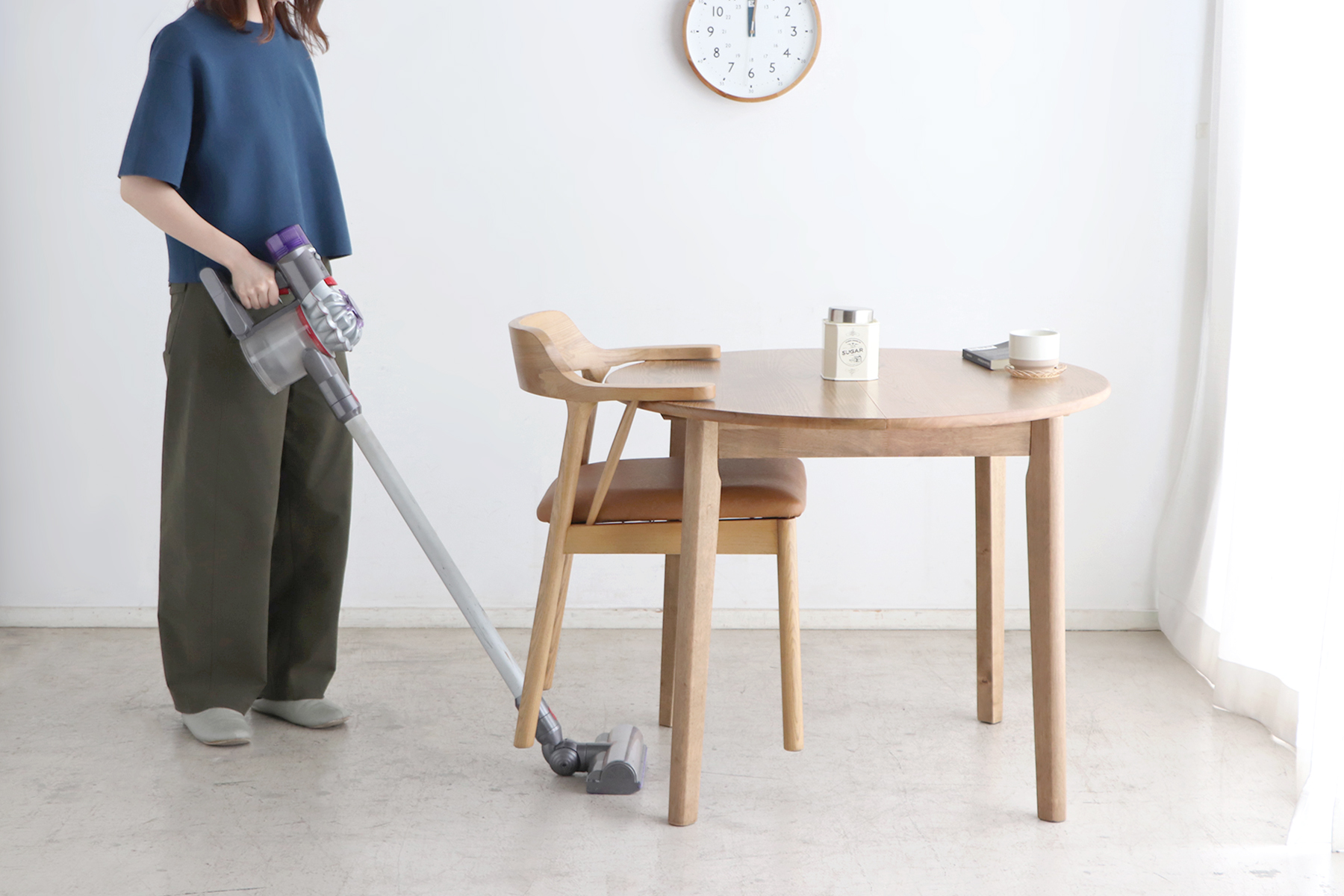 アームをテーブルに掛ければ、毎日の床掃除も驚くほどスムーズ。
