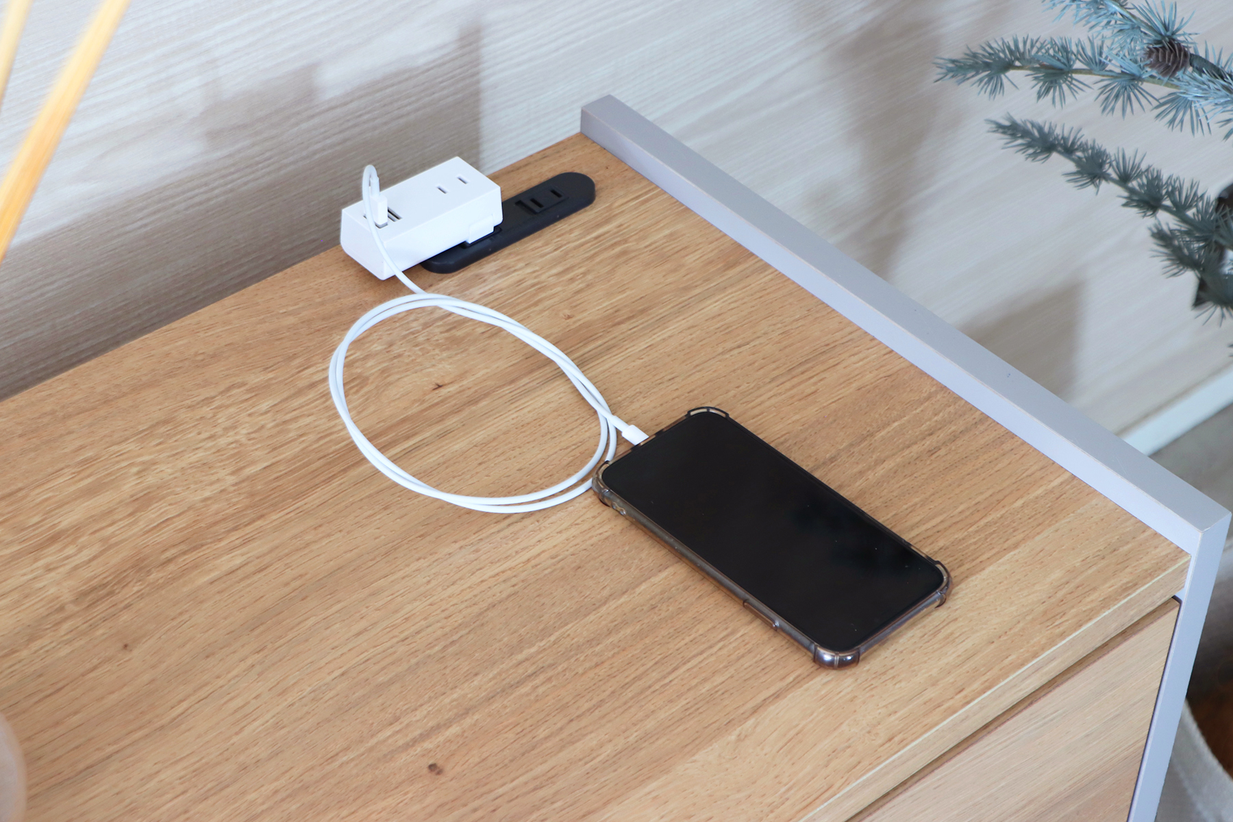 天板には二口コンセントが付いているので、スマホの充電や家電の設置にも便利です。