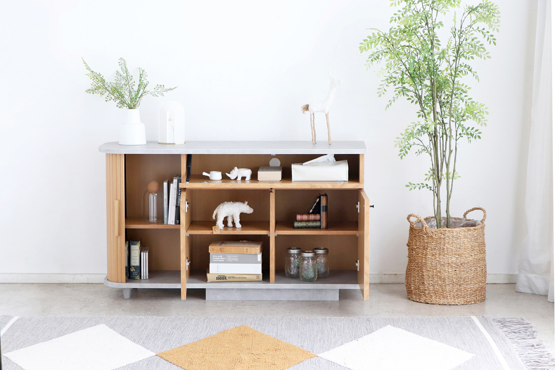 収納力にもこだわったサイドボード。