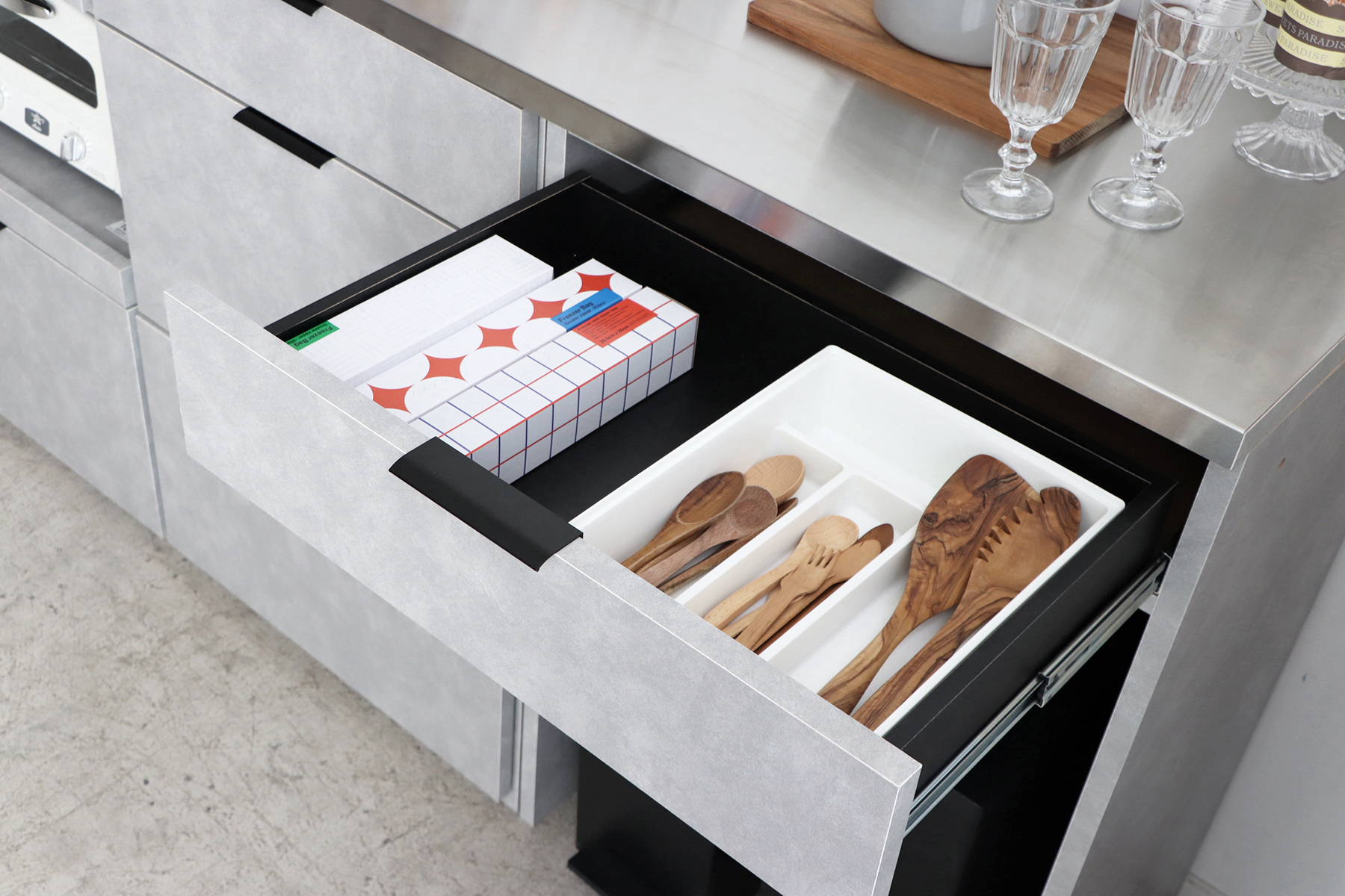 家電やダストボックスも収まり、キッチン周りを整頓。