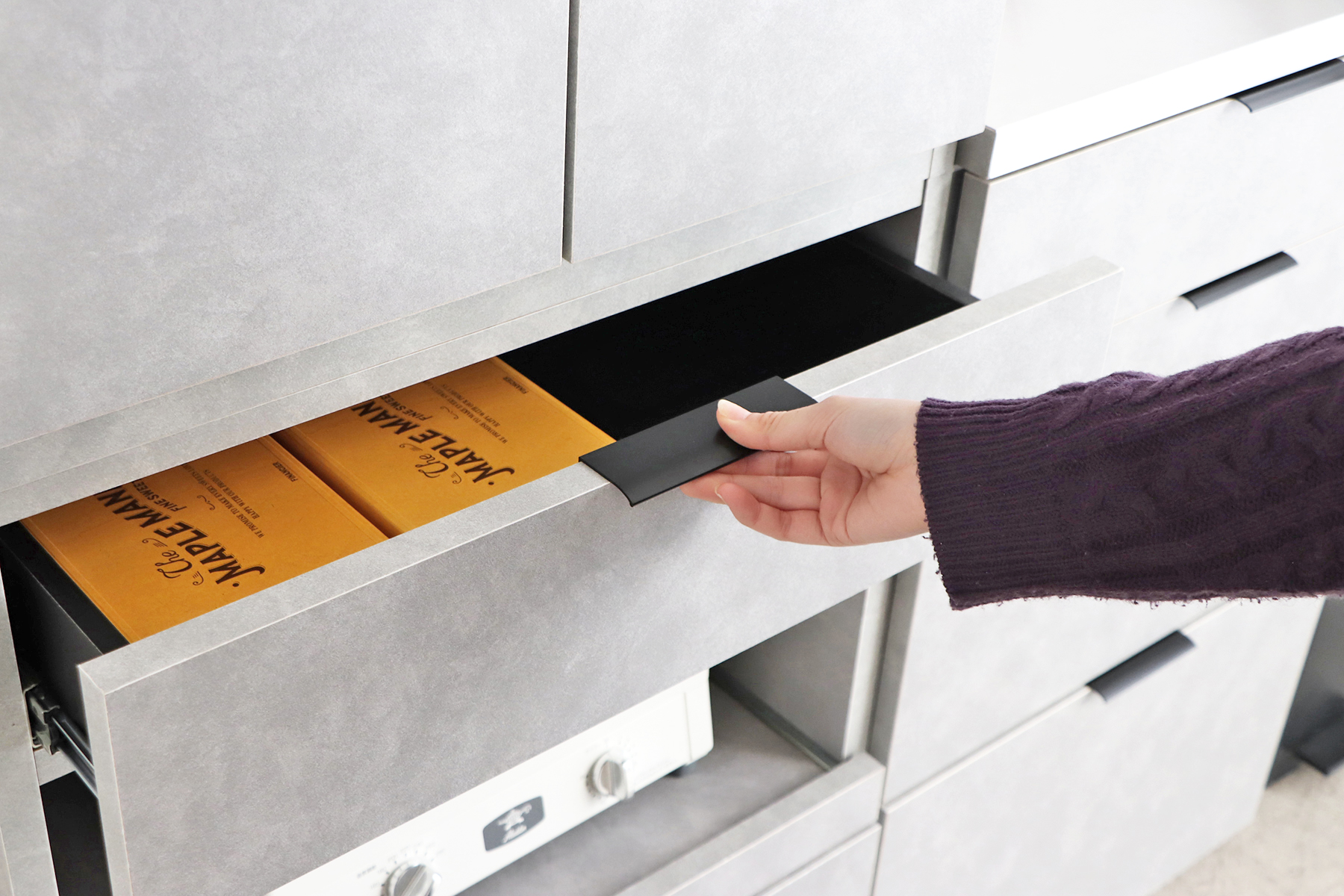 引き出しには小物やストック類をすっきり整理できます。
