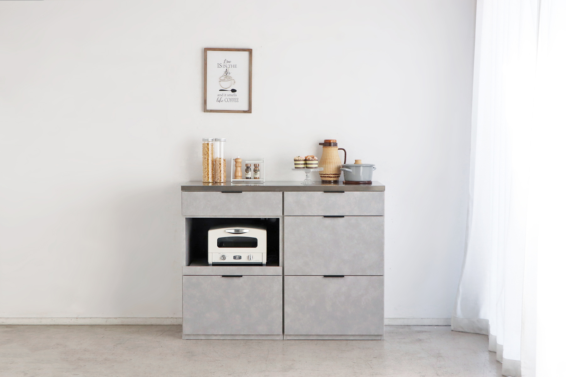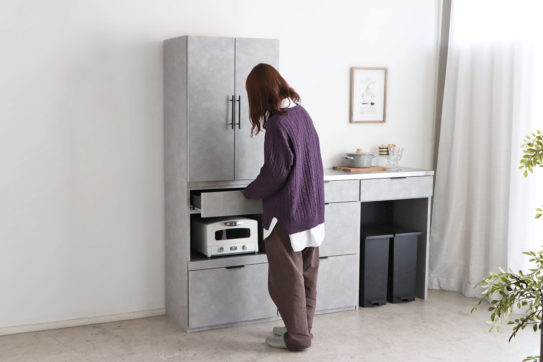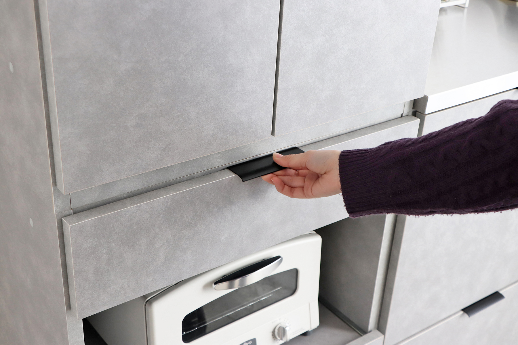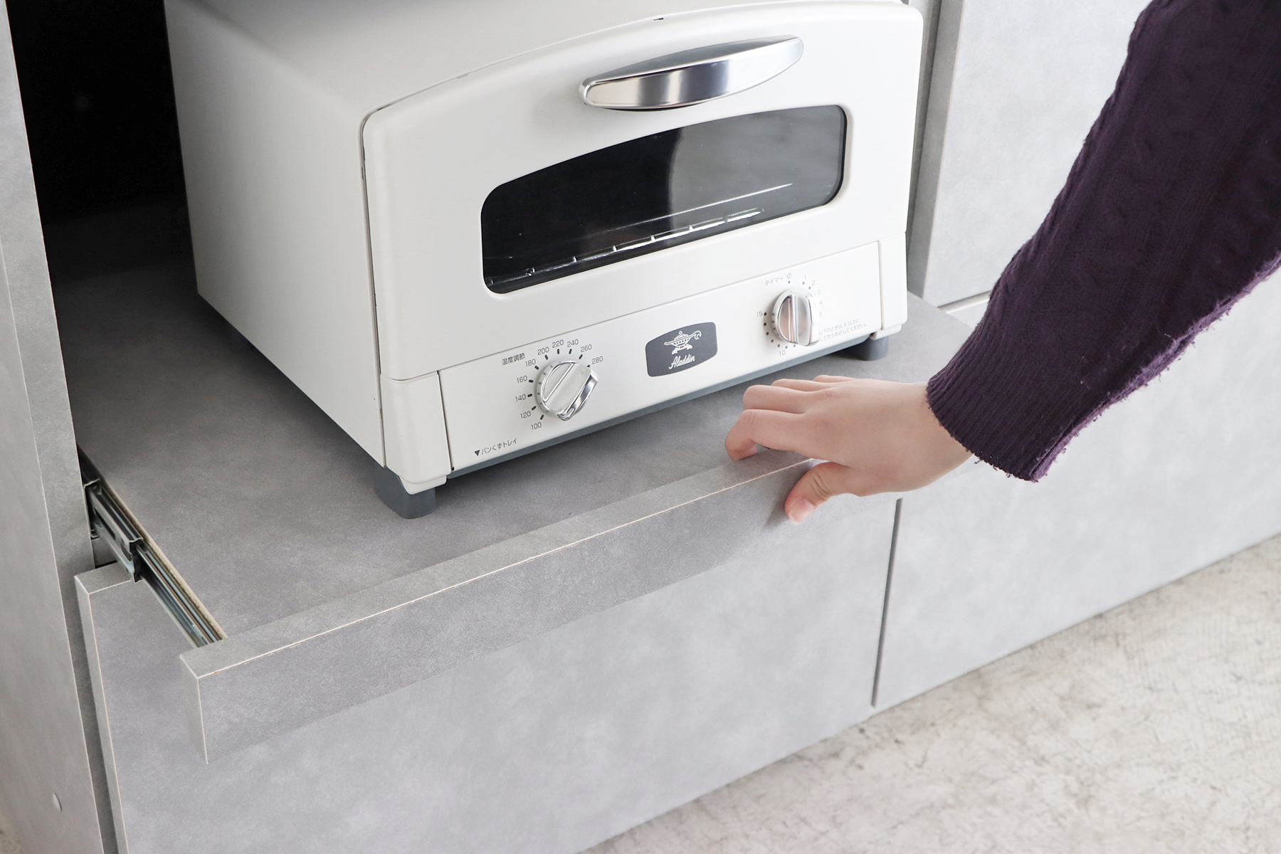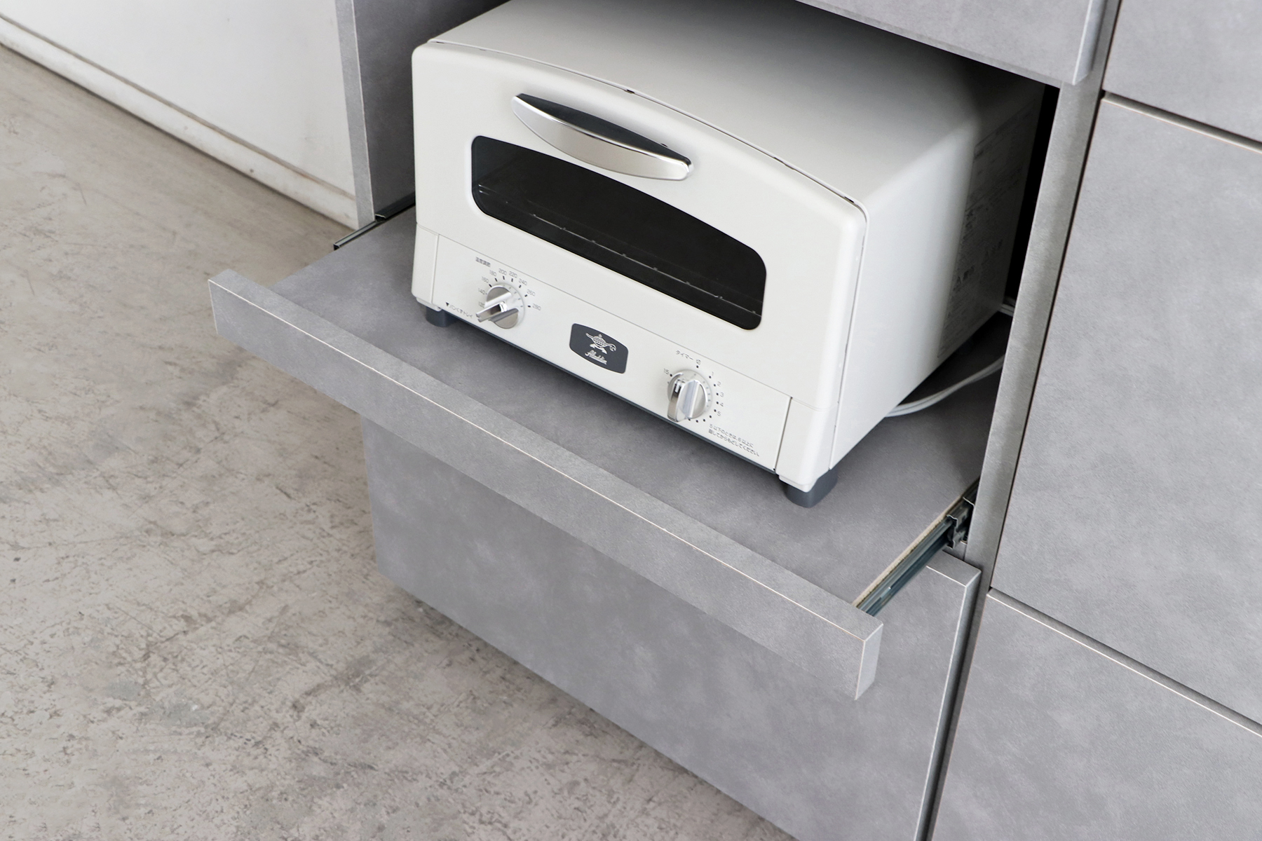 電子レンジやトースターなどの家電を置けるスペースに加え、