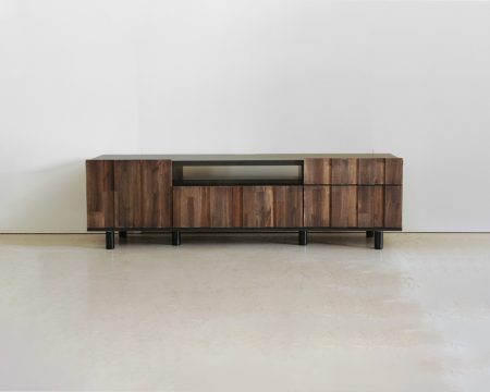 モダンなアシンメトリースタイルとアカシア無垢のヴィンテージな質感が
